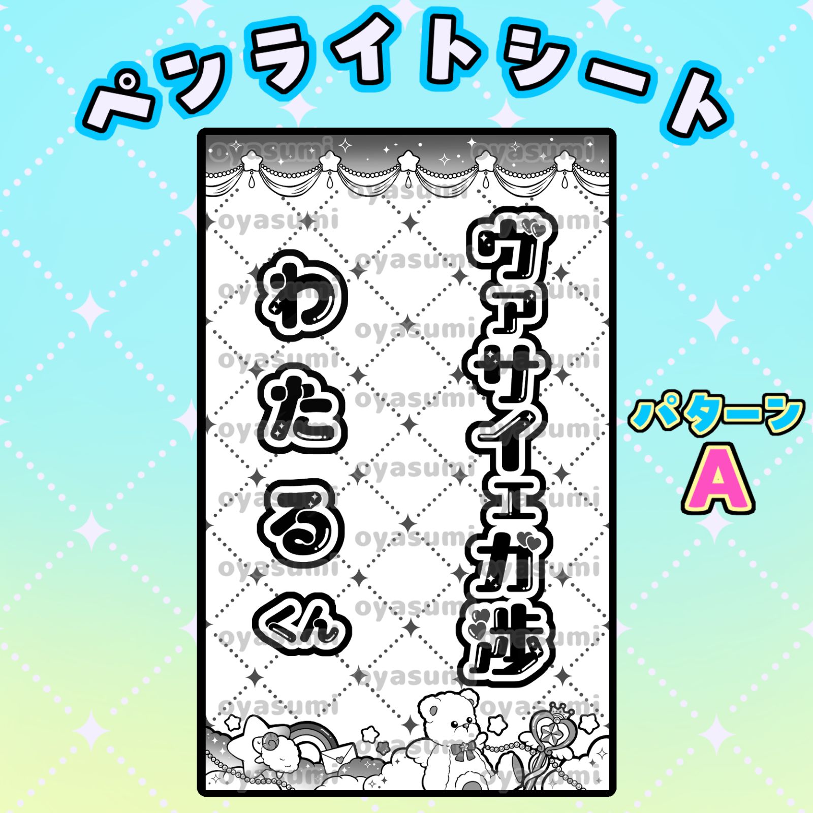 | 商品の特徴 | 水玉デザイン⭐ キンブレシート オーダー ペンライト 少年忍者 Man。アニマルデザイン】キンブレシート オーダー ペンライト シート 少年。水玉デザイン⭐ キンブレシート オーダー ペンライト 少年忍者 Man。【高画質・インクジェットプリント】印刷の名前はどなたでもOK◎ご使用日の10日以上前までにオーダーしてください⚠️他デザインは #pom_design で検索してください♪オーダーできますか?等の質問は不要です。【オーダー要項】▼コピペしてください名前(右):グループ名(左):水玉の色:散りばめる単語(なしも可):フォント:文字の枠:枚数:使用日:◎150色以上対応可~オーダーの流れ~①オーダー要項をコピペしてコメント欄に記入②サンプル画像を作成します③デザイン確認後、お支払い④ご入金確認後、印刷→発送【サイズ】90mm×135mm※ご要望があればサイズ変更可【金額】2枚重ね 1,870円(修正追加料金なし)1枚 990円※点灯時、発色をよくしたい方は2枚重ねがおすすめです!速達に変更+500円(発送は平日のみ)メルカリ便に変更+250円#キンブレシート。モノクロデザイン】キンブレシート オーダー ペンライト シート 少年。直接コメント欄にオーダー内容のご提示をお願いいたします。乃木坂46山下美月 モバイル 16点 まとめ売り | ||