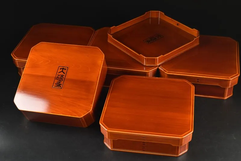 ほぼ未使用 懐石道具 木製 溜塗 大徳寺 弁当 縁高重箱 四客揃 刻印 紙箱 懐石道具 木製 溜塗 大徳寺 弁当 縁高重箱 四客揃 刻印 紙箱 ほぼ未