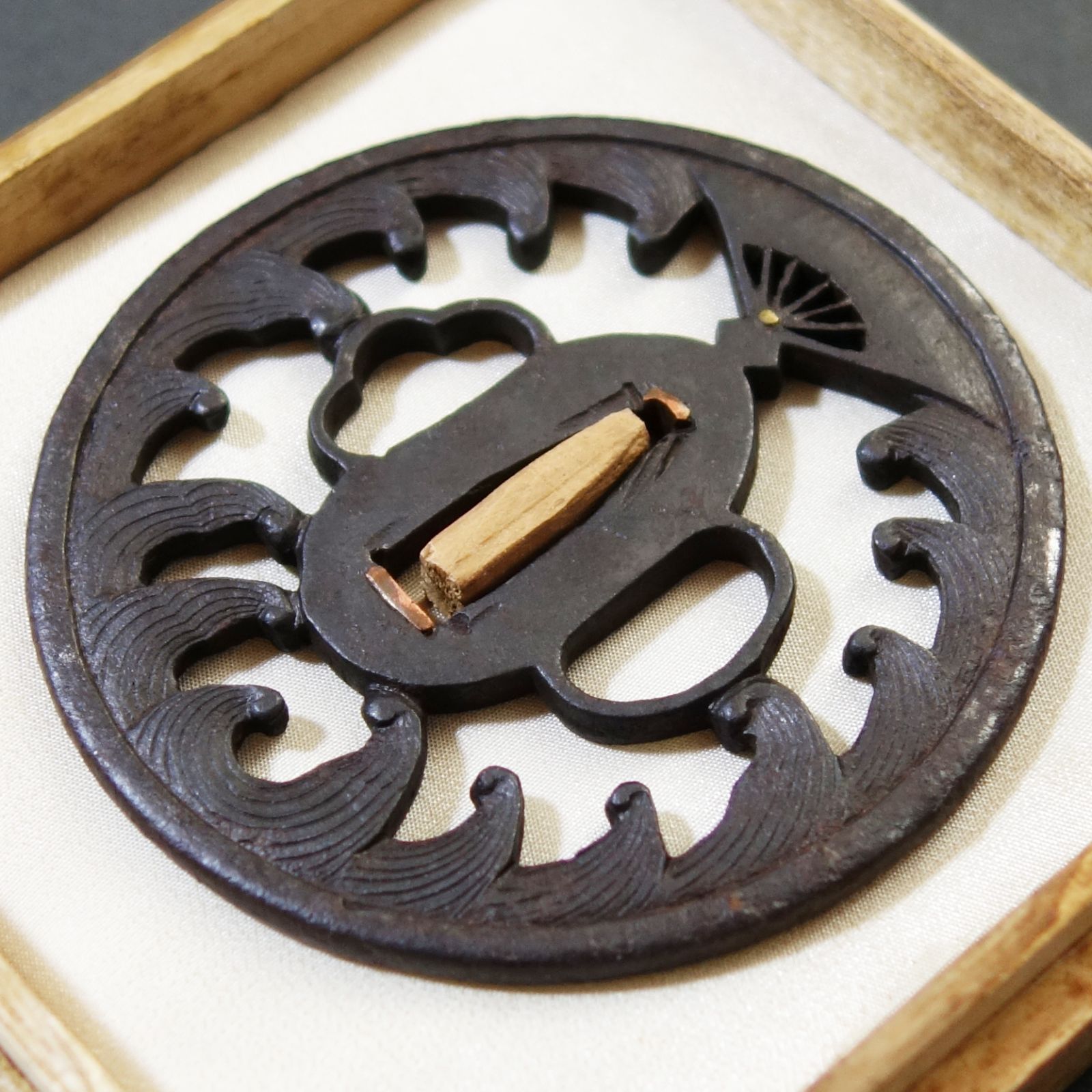 | 商品の特徴 | 骨董逸品【扇の的透鍔 鉄地】(鍔箱付き) 日本刀 刀装具 鍔 鐔 武具。鍔 刀 骨董 伝統工芸 鍔 刀鍔 骨董 伝統工芸 鍔 一覧 | 日本刀。鍔 骨董品 時代物 B-78 鍔 在銘 武具 刀装具 日本 骨董品 時代物 美術。父が昭和45年に購入した鍔です。秋草赤銅 時価35,000円というメモが一緒に入っておりました(写真参照)少し赤みを帯びていますので、メモより銅製だと思いますが、詳しくは分かりません。写真から御判断下さい。横巾 5.8センチたて幅 6.3センチ厚さ 4ミリおおよその値ですのでご了承下さい。。鍔 【 素銅地 竹に雀透鍔 】 日本刀 刀装具 鐔 骨董 古美術 Ac25042301。模造刀 座頭市 仕込杖 尾形刀剣 楕円古式鞘 箱付き 251110-3。KATSUHIKO螺鈿装飾】刀掛け 三本掛け 刀台 刀置き 刀台座。関の美術刀剣 空想刀 黒斬剣艶桜 黒塗刀身 大刀 模造刀 模擬刀 仮装パーティー | ||