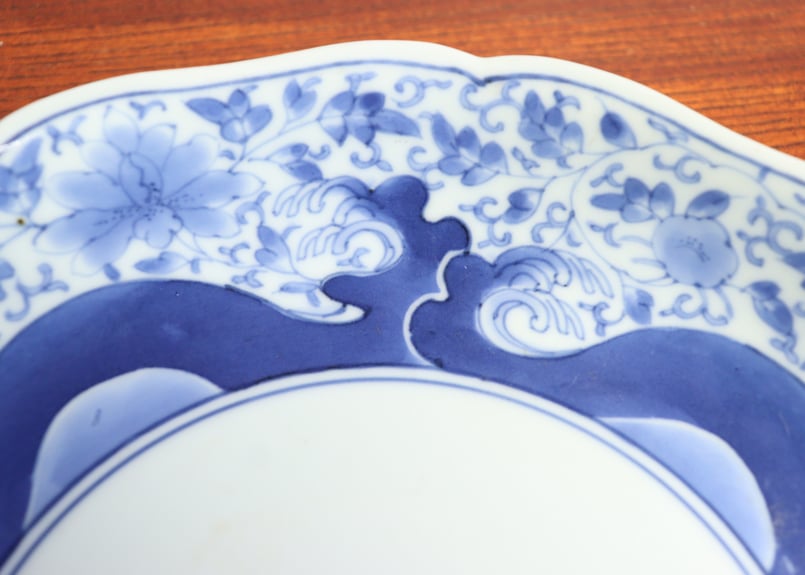 | 商品の特徴 | 江戸中期藍柿右衛門花唐草と波図7寸皿車輪福銘① ノミホツ | 吉祥寺。文様シリーズ 花青海波 FS型80皿 | FUTADA。柿右衛門色絵花鳥文輪花皿 | 商品詳細 東洋古陶磁の前坂晴天堂。美しい藍柿の深皿です。見込みの五弁花や銘款の「渦福」も整い、まさに柿右衛門窯の逸品です。一か所、口紅部分に薄いホツレがあり、共色直しがございます。ほとんど分からない程度、目立ちません。他に傷はございません。江戸中期元禄頃の柿右衛門です。よろしくお願いいたします。* 真贋の保証を致します。口径 約 14.5 cm 高さ 約 5.1 cm 高台径 約 7.5 cm よろしければホーム・ページもご覧ください。ヤフーやグーグルにて 古美術 ふくで検索いただきますと表示されます。よろしくお願いいたします。 〒321-1261 栃木県日光市今市 1559 古美術 ふく 福田昌之 Tel. 0288-22-8738。藍草紋6.8深皿(和風丸皿(中サイズ))|食器通販の陶磁庵。煎茶盆芭蕉葉型 盆A461。M851/ 木製漆器 草花絵変蒔絵 足付円形膳 五客 根来 黒塗 / 丸輪島加賀。唐物 堆朱香合 時代物 アンティーク 朱漆 彫漆。ヴァイキング ドリンキングホーン 角杯 ホーンカップ 400ml 4点セット。輪島塗 光栄堂 点心盆5枚 共箱。輪島塗 角盆 蒔絵 金彩 牡丹文 蝶文 2客。漆器 湯のみ入れ 鶴と太陽の彫刻。未使用 茶道具 孝雄造 流祖好 木製黒真塗 茶入盆 宗乐書 四方盆 共箱。未使用 津軽塗花台 盆栽台 華道具。乾漆丸茄子香合 内金塗 茶道具 共箱付き 箱書き有 | ||