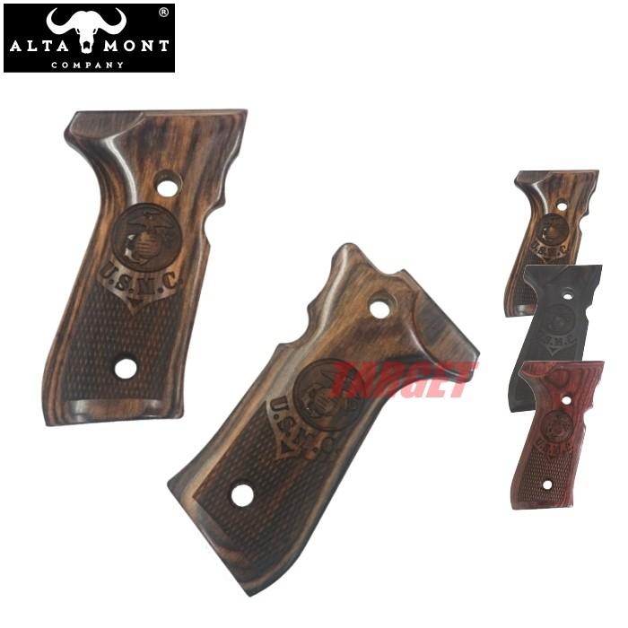 - ミリタリー > トイガン > 重量計161g EGYPT エジプト製 真鍮グリップ ベレッタm9 m92f対応 ☆アルタモント ベレッタ M92F用 木製グリップ チェッカー パネル