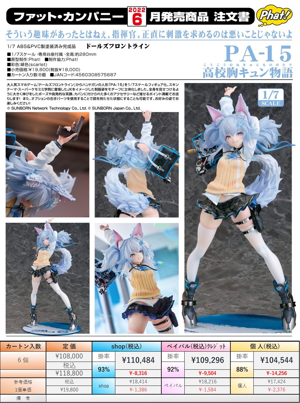 | 商品の特徴 | 22.6月発売】ドールズフロントライン PA-15 高校胸キュン物語 1/7。ドールズフロントライン PA-15 高校胸 キュン物語 1/7 塗装済み完成品。thumb_pht57568_0_1622086314.。正規品・未開封新品塗装済み完成品【スケール】1/7【サイズ】全高約280mm【素材】ABS&PVC【セット内容】フィギュア本体専用台座【解説】原型制作・制作協力:Phat!彩色:緋色(scarlet)大人気スマホゲーム『ドールズフロントライン』からハンドガンの人形「PA-15」を1/7スケールフィギュア化。シノビマスター 閃乱カグラ NEW LINK 雪不帰 バニーVer.。お好みの姿でお楽しみください!ドールズフロントライン PA−15 高校胸キュン物語 ファットカンパニーブランド:ファット・カンパニー。ドールズフロントライン PA-15 高校胸 キュン物語 1/7 塗装済み完成品。スキンテーマ・スーパーケモミミ学院に登場したJKをイメージした制服姿をモチーフに立体化しました。全身を見せつけるように大きく伸びをしたポーズや挑発的な笑顔、カバンに付けられた多くのアクセサリーなど推せるポイント満載でお送りします!また、オプションの右手パーツを使用することで銃を持たせた状態にすることも可能です。アグモン & タケル フィギュア GEMシリーズ | ||