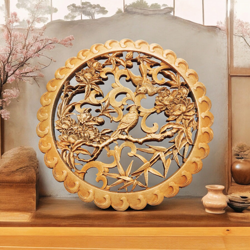 セール✨アンティーク金属細工古銅 花、竹、鳥紋浮彫 ハート型香合 小物入れ手作り 竹花小鳥 26.5cm(竹・花・カササギ) 参次元彫刻『雅』 透かし彫 楠