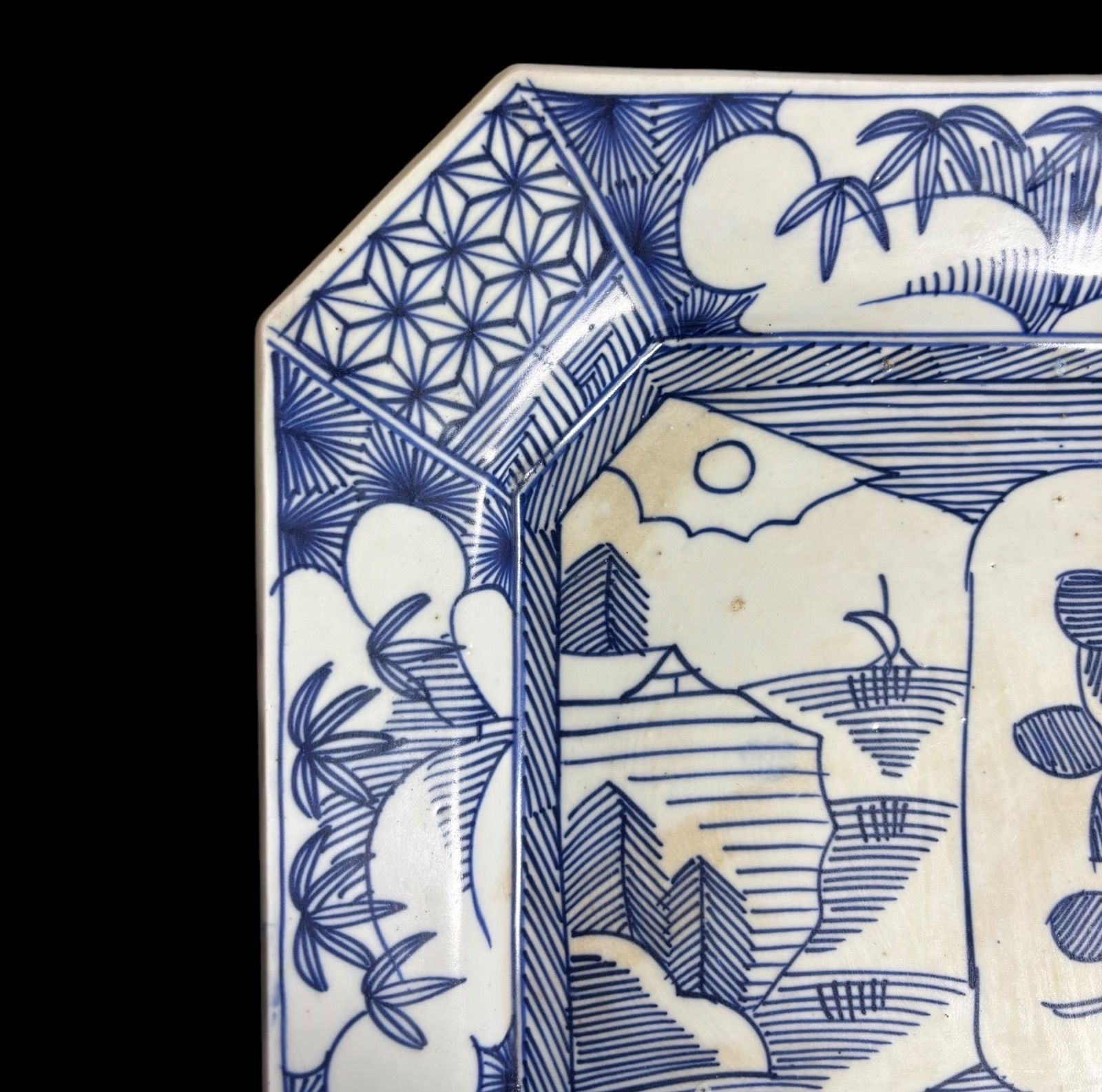 - 美術品・アンティーク・コレクション > 工芸品 > 伊万里焼 古伊万里 染付 竹文 八角小皿 七客 時代箱付 C R7593 伊万里焼 古伊万里 染付 竹文 八角小皿 七客 時代箱付 C R7593 伊万里