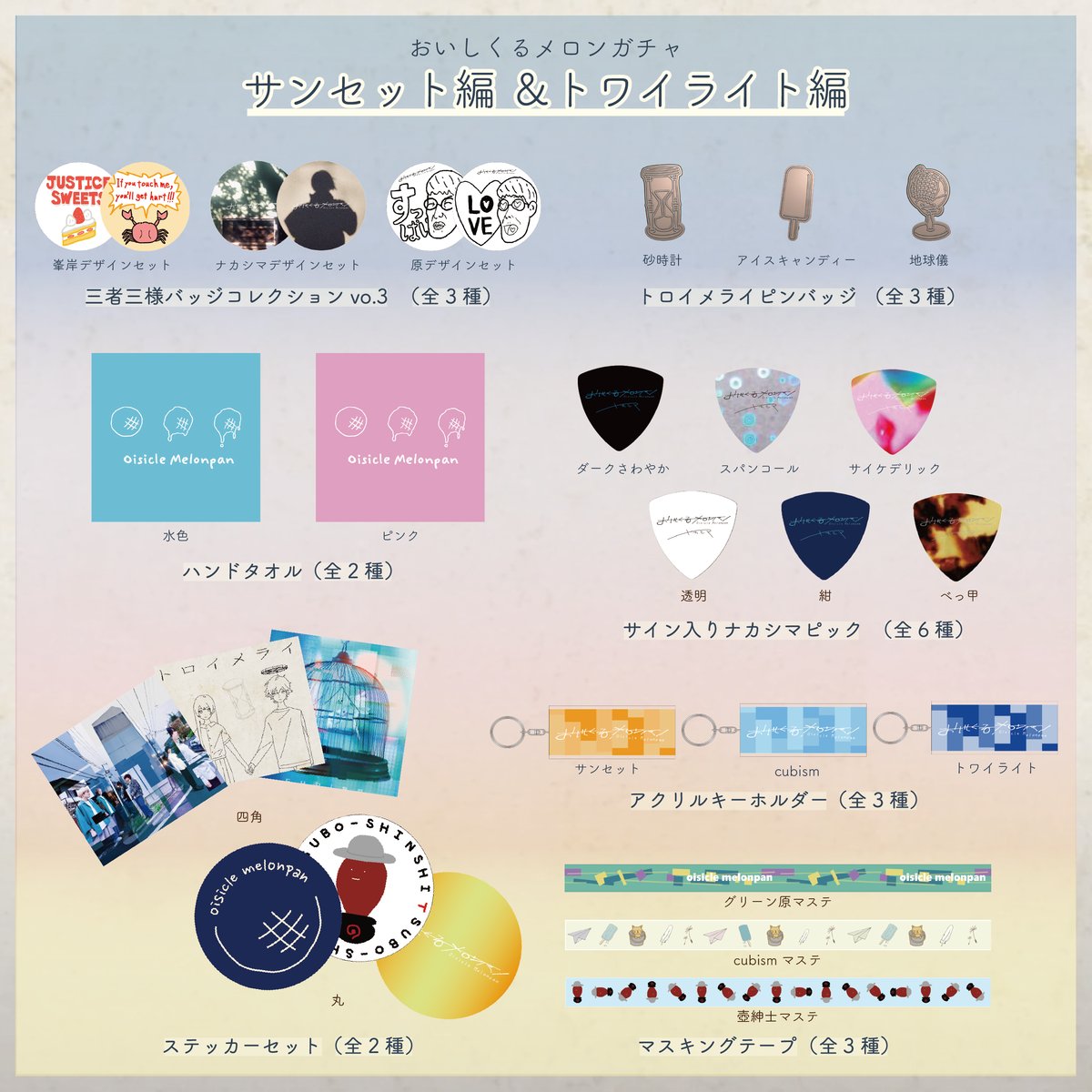 | 商品の特徴 | おいしくるメロンガチャ サンセット編 & トワイライト編 | おいしくる。おいしくるメロンガチャ never ending blue編 | おいしくるメロンパン。Amazon.co.jp: おいしくるメロンパン ガチャ 缶バッジ アクリル。おいしくるメロンガチャナカシマさんサイン入りピックラブリー 1500円アンティーク 1000円風草 900円ゲーミング 800円食べられ原キーホルダー 600円CDジャケットキーホルダー 未完成に瞬いて 1200円上記1つにつき青の四角から1点(各500円)抱き合わせ合わせた金額+送料のお値段で専用ページ作成いたします。。2026年最新】おいしくるメロンパン ガチャの人気アイテム - メルカリ。こちらのページは全てまとめてのお値段となりますのでそのままご購入も歓迎です。JSF Manhattan Records キャップ jesse rize | ||