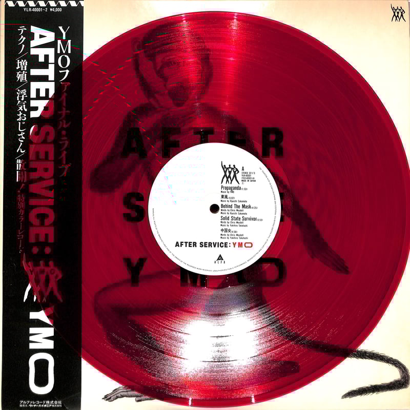 | 商品の特徴 | YMO / AFTER SERVICE(限定カラーレコード)(LPレコード) | Books。Yahoo!オークション -「ymo after service」の落札相場・落札価格。Yahoo!オークション -「ymo after service」の落札相場・落札価格。❑商品説明動作環境確認済みです。Yellow Magic Orchestra - After Service 2LP Red (Japan Import。YMO『After Service』のプロモ用赤盤2LP(YLR‑40001/40002)は、1984年に日本のAlfa/Yenレーベルからリリースされたオリジナル赤色ビニールプレスの見本盤(プロモーション盤)で、帯付き・ライナーインサート無し仕様が特徴です。桑田佳祐 Keisuke Kuwata『いつも何処かで 』LPレコード。東風、ライディーン収録されてます!色褪せずむちゃくちゃかっこいいです、、❑状態ケース、ディスクに使用感があります、素人保管のため細かいキズ・汚れ等を気にされる方、神経質な方はご購入ご遠慮下さい。NEGATIVE SUN MENTICIDE レコード ネガティブサン。❑購入先古物市場にて購入❑発送1〜2日以内に発送致します。Buddha Brand レコード3枚セット。佐川急便/日本郵便にて匿名発送段ボール+プチプチにて梱包します。ずとまよ 潜潜話アナログレコード盤 新品未開封 LP。❑値下げについて・相場検索により値段は常に変動いたしますので大幅な値下げは行いません。アナログレコード ああ懐かしのジャズソング SP復刻盤。・値下げ希望だけ行い、購入されない方が多いため、値下げはフォローをしていただいた方限定とさせていただくことにしました、ご了承ください。L'Arc~en~Ciel ectomorphed works レコード ラルク。※ レコードは80サイズで送料が900円ほどかかります。原田知世 / 恋愛小説4 レコード。重さによっては100サイズになります。CRAZY KEN BAND 肉体関係。お取引の際はプロフィールをご確認の上ご了承頂いた方のみ購入をお願い致します。【赤盤】青函海底トンネル建設の歌『躍進!! 青函吉岡企業体』。他にもレコードを随時出品中です。あいみょん 猫にジェラシー 2LP 新品。是非ご覧ください。12inch★山瀬まみ/可愛いゝひとよMAMI YAMASE/可愛いひとよ。↓↓↓#thriftdiggyjapanレコード一覧※商品はUSED品・もしくは保管品となります。尾崎豊 浜田省吾 レコード5枚セット LP 12インチ。再生、起動を確認しておりますがお客様の再生環境よっては正常に動作しない場合がございます。名盤DJ BOBO JAMES aka D.L / ABSOLUTELY BAD。その点を理解した上でご購入の程、宜しくお願い致します。藍心湄 紅蜻蜓的夢 LPレコード 台湾盤 飛羚唱片 亜モノ 和モノ シティポップ。※万が一当方の記載内容に不備や見落としなどがあり、商品説明と著しく品質や状態が異なる場合は返品対応などご相談下さい。ワンオクロック one ok rock lpレコード the beginning。管理番号317 | ||
