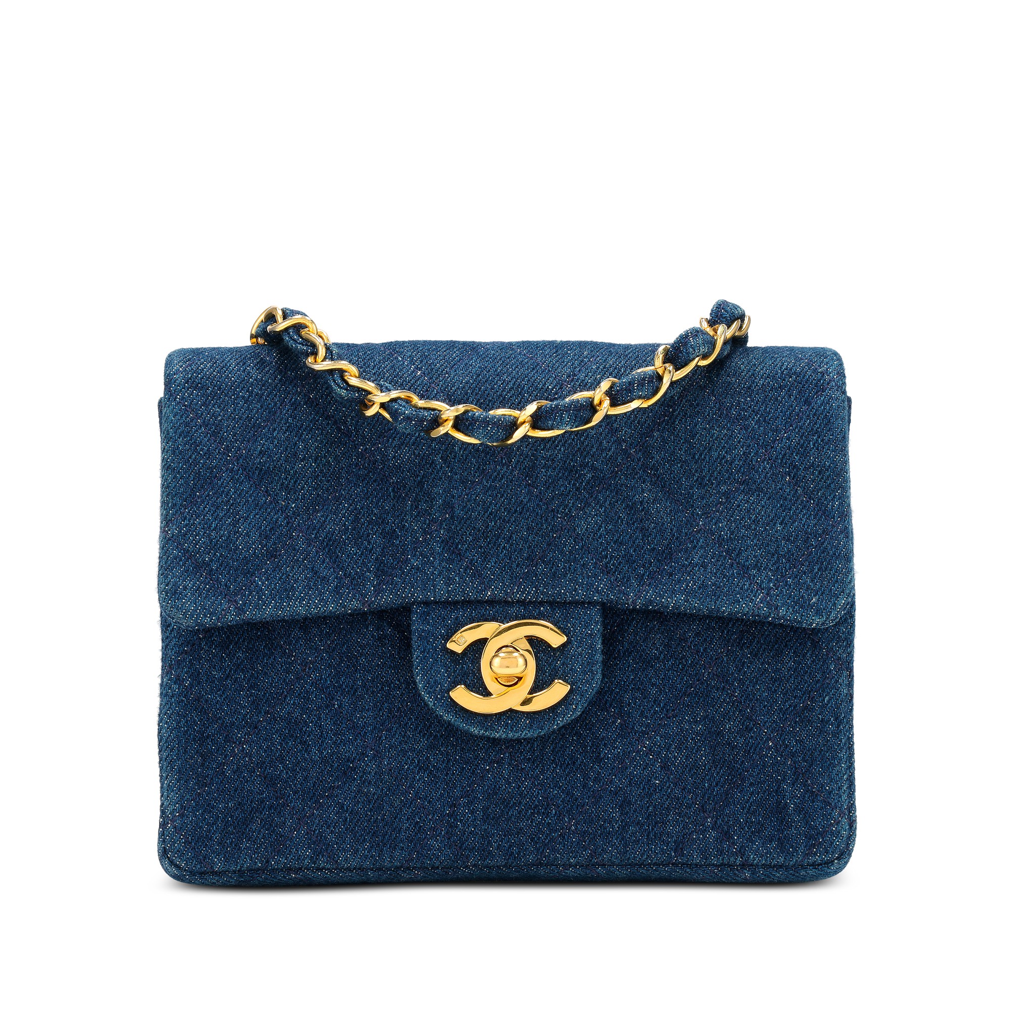 - メイクアップ > メイク道具・化粧小物 > 【オールド】シャネル Chanel Vintage Blue Quilted Denim Mini Square Classic Single Flap