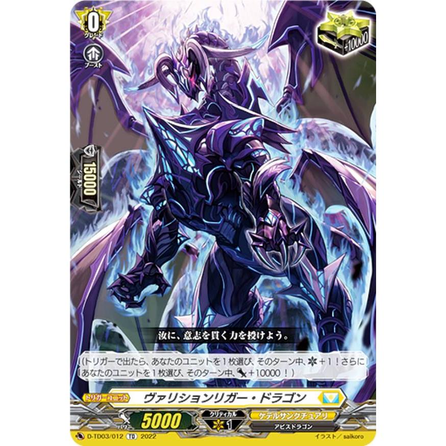 | 商品の特徴 | ヴァンガード ヴァリションリガー・ドラゴン(FR) ヴァリションリガー。ヴァンガード ヴァリションリガー・ドラゴン(FR) ヴァリションリガー。ヴァリションリガー・ドラゴン【TD】{D-TD03/012}《ケテルサンクチュアリ》。ご覧いただきありがとうございます!即購入OKです◎値下げ交渉・取り置き・バラ売りは対応しておりません。カードファイト!! ヴァンガード 明星エリカ PR クリティカル。まとめ買いの場合のみ、送料分のお値引きが可能です。なななな様。DZ-BT12/FR07 リキッドフロー・ドラゴン FR | ヴァンガード,DZシリーズ。+200円でメルカリ便への変更も可能です。ご希望の方は購入前にコメントをお願いいたします。リリカルモナステリオ あわてんぼうのクリスマス RRR以下4コン。SR ヴェイズルーグ パーツ。コメントにてお気軽にご相談ください。#つちながヴァンガード出品こちらのハッシュタグから、ヴァンガード関連の商品もご覧いただけます!気持ちの良いお取引を心がけておりますので、よろしくお願いいたします!種別···複数カード | ||