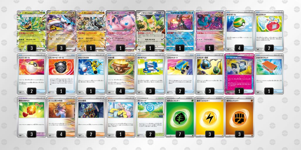 | 商品の特徴 | ポケカ オーガポンタケルライコウデッキ スリーブ付き ポケモンカード。タケルライコ デッキ」の激安通販 | magi。ポケモン - タケルライコex 構築済みデッキの通販 by デッキ販売メイン。タケルライコex宝石型の構築済みデッキになります。自分で使用していたので反りが目立ちます一律、プレイ用でのご購入をオススメ致します。内容に付きましてはお写真の通りレアリティ、スリーブもそのままのお渡しになります。発送に付きましては小型ダンボールにて発送予定となります。⚠1部レアリティバラつき有り⚠・オーガポンみどりのめんexSAR×1UR×2・ネストボールノーマル×2UR×2ご購入後の返金、返品対応はすり替え等のトラブル防止の為、お断りさせて頂きますのでご了承ください。。全文無料】宝石さがさないライコポンのすゝめ|kei4806。ポケモンカードゲーム カードセット 10th。【PSA10】リザードン vstar ミュウツー vstar SAR。ポケモン スタートデッキ100 101 メガニウム エンブオー オーダイル。新品未開封 MEGAドリームex シュリンク付き 4box | ||