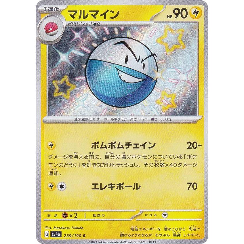 | 商品の特徴 | ポケモンカードゲーム SV4a 239/190 マルマイン 雷 (S 色違い) ハイ。マルマイン(037/095 R) | R | ドラゴンスター | ポケモンカード。マルマイン | ポケモンカードゲーム公式ホームページ。マルマイン(239/190 S) | S | ドラゴンスター | ポケモンカード。商品の説明はありません | ||