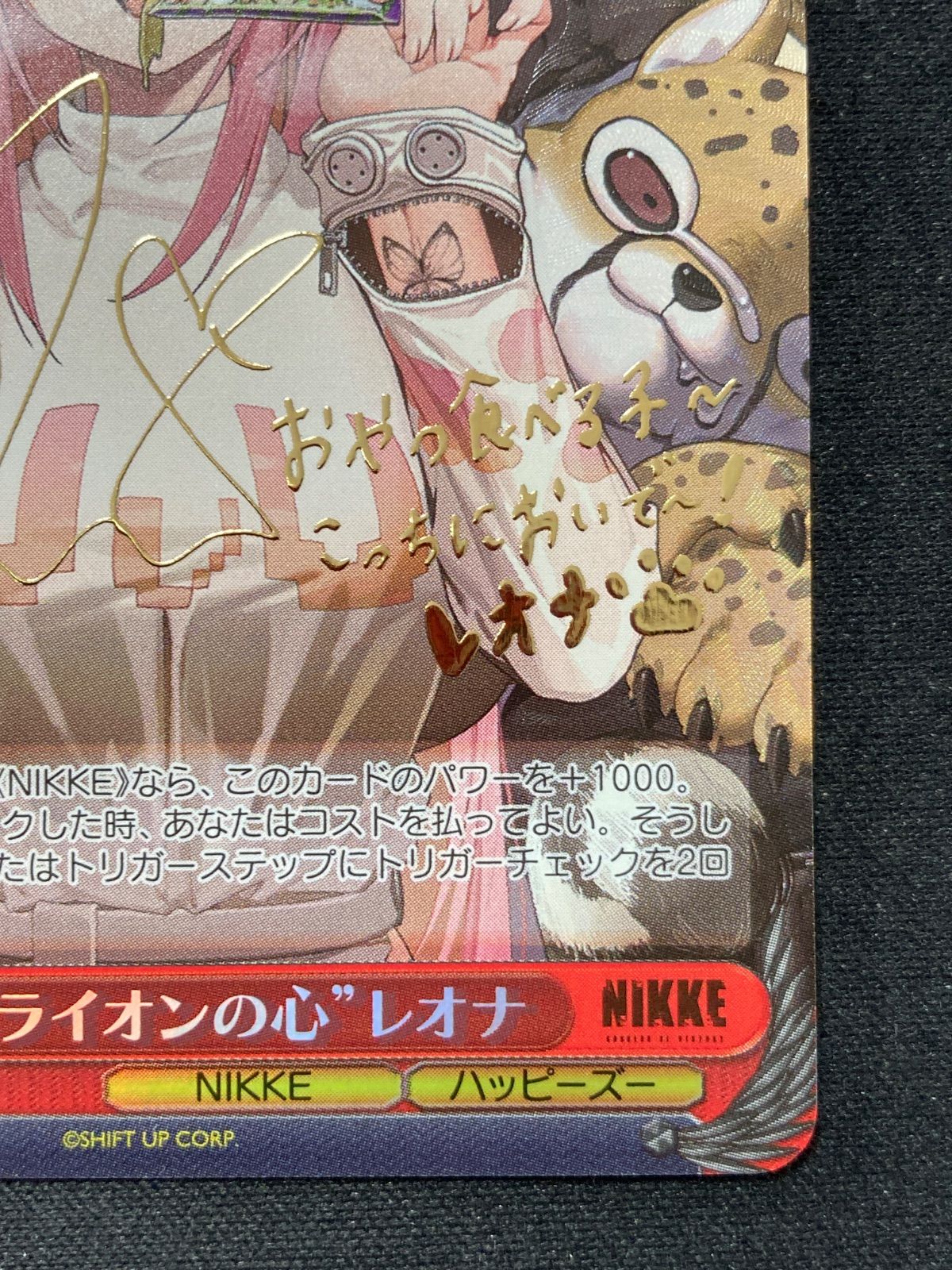 | 商品の特徴 | ヴァイス 。ヴァイス 。WS ヴァイスシュヴァルツ ライオンの心 レオナ SP サイン NIKKE。ご覧いただきありがとうございます!ご購入前にプロフ・説明欄のご確認をお願いいたします!***********ご購入前にご確認ください**********※専用出品はいたしません。コメントをいただいても返信は出来かねます。※配送業者に荷物を受け渡し後の配送状況、配送中・配達後に生じた損害(荷物の滅失、損害等)につきましてはこちらでは保証いたしかねますので、配送業者にお問い合わせいただきますようお願い申し上げます。早めに到着をご希望の場合は購入時にご連絡ください。お使いのモニターやこちらの撮影環境によって実際と異なる場合があります。※こちらは全て素人保管品です。※コメント中であっても先に購入された購入者様とお取引をいたします。メルカリのシステム上14日経過した場合取引自動完了となります。※未開封・未使用品の不備につきましては交換等は出来かねます。*********************************【 商品名 】ヴァイス \"ライオンの心\"レオナ SP●状態裏面上部に白かけがあります。また、すり替え防止の為、商品受け取り後の返品交換等には対応いたしかねます。#ヴァイスシュバルツ#WS#勝利の女神:NIKKE#メガニケ#NIK/S117-062SP#住村はるか#金箔押しサイン入り。SP “ライオンの心”レオナ(サイン入り) 買取 | 勝利の女神:NIKKE。即購入して頂いて大丈夫です!※値下げ交渉、その他商品と合わせての販売、商品の一部でのお取引はいたしません。ヴァイス インプラカブル SP サイン。【マグネットローダー付き】航空母艦 信濃 SP。※発送はクロネコヤマトのみとなります。アズールレーンvol2 ヒンデンブルクSP ka。折れ対策あり ヴァイスシュヴァルツ インプラカブル SP サイン。※土日祝は仕事のため発送が出来ません。ヴァイス ガンゲイル・オンライン SEC魔王の正体 エルザ(サイン入り)未使用品。ヴァイス アズールレーン vol.2 ヒンデンブルク SP。※色合いに関しては個人的主観で判断しております。PSA10 未来へ一緒に 宝鐘マリン SSP サインカード。ヴァイスシュヴァルツ アズールレーン ヒンデンブルク SP サイン。気になる方は購入前にご確認ください。インプラカブル SP サイン WS アズールレーン vol.2 ヴァイス。ヴァイスシュヴァルツ SP ヒンデンブルク アズールレーン Vol.2 ②。神経質な方は購入をお控えください。ヴァイスシュヴァルツ “大好き”を前に 桐谷遥 SSP。ヴァイス 蓮ノ空 Dream Believers 大沢瑠璃乃 SEC。※ご購入頂いた商品につきましては到着から5日以内に状態等ご確認ください。【未使用】雪花ラミィ SSP 街明かりと冬の街 サイン ホロライブ ヴァイス。【田中】全力アプローチ 朱乃【ARS10】、姫島朱乃【PSA10】。取引完了後キャンセル等は出来ない場合があるため、万が一不備等ありましたら到着から5日以内、また評価の前にご連絡ください。ヴァイスシュヴァルツ 航空母艦 信濃 SP サイン。ヴァイスシュヴァルツ インプラカブル アズールレーン。直接メーカーにお問い合わせください。信濃 sp アズールレーンvol.2。ナオさん専用。その他見落としている傷、記載のない傷等傷みがある場合があります。【PSA10】ヴァイス “サマードレス” しろは SP サマポケ。ヴァイスシュヴァルツ アズールレーン インプラカブル SP。トラブル防止の為、プレイ用としてご購入をお願いいたします。蒼炎 SP 2枚セット | ||