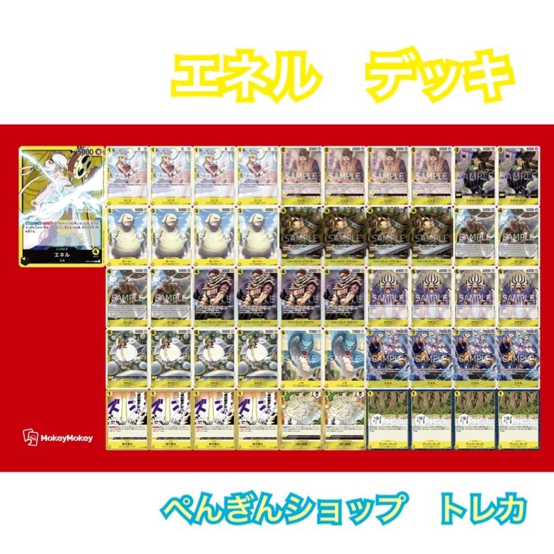 | 商品の特徴 | ワンピースカード 構築済デッキ エネル。黄エネルの優勝デッキレシピを紹介【ONE PIECEカードゲーム。10.5弾 黄エネルデッキ 【デッキ販売】 - カードショップ トレカード。ワンピースカードエネルデッキ。エネルデッキとパーツあまりですパラレル多めバラ売り不可種別···複数カード | ||