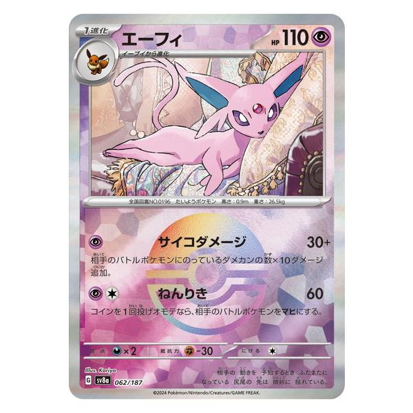 | 商品の特徴 | ポケモンカードゲーム エーフィ (モンスターボール) テラスタルフェス。Pokemon(ポケモン) L72【ポケモン カード】 LEGEND エーフィ L2 024。英版エーフィ チャンピオンシップSTAFFプロモ - BGS MINT9 英版。エーフィ(☆)[L2]の価格・値段と買取相場 - ポケカジラ。種別···複数カードヨルノズクカミツオロチピジョットソルロックキハダゼクロムゼラオラオーガポンみどりのめんコライドンエーフィex | ||