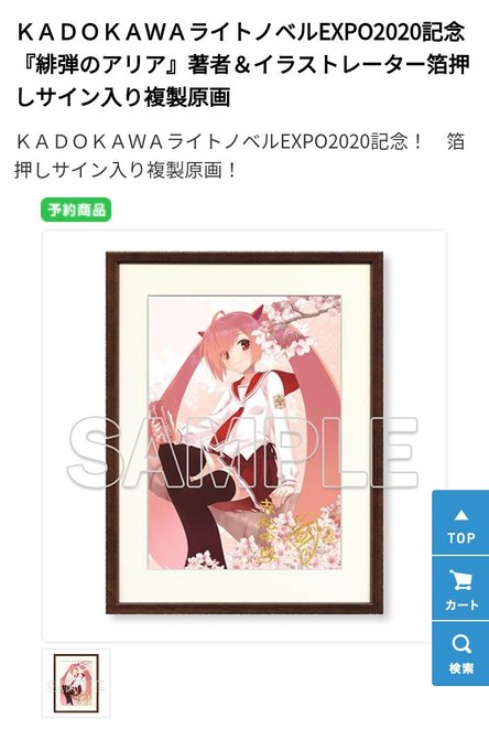 | メーカー | 緋弾のアリア 複製原画 箱推しサイン入り 緋弾のアリア |