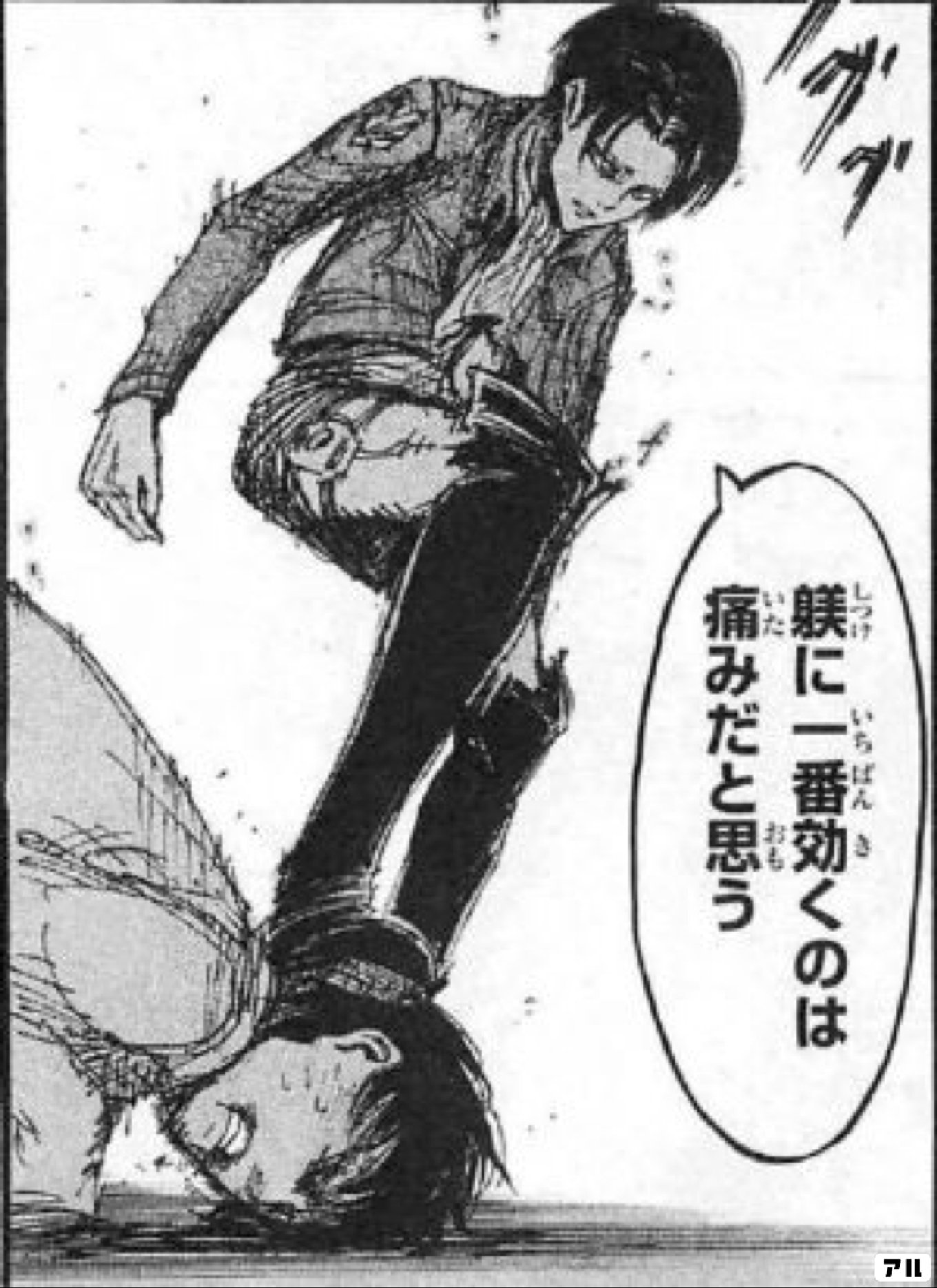 | 商品の特徴 | 躾に一番効くのは 痛みだと思う - 進撃の巨人 | アル。躾に一番効くのは痛みだと思う。お前に一番必要なのは言葉による「教育。sddefault.jpg。リヴァイ兵士長のシビれる名セリフ 「これは持論だが躾に一番効くのは。商品の説明はありません | ||
