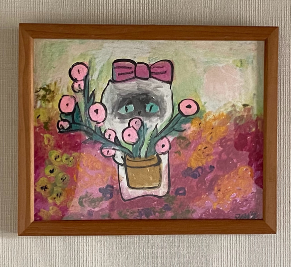 | メーカー名 | 4b773 | ブランド名 | 絵画 。原画☆【美しい花畑にきれいな花を植えたかわいいシャム猫】 |