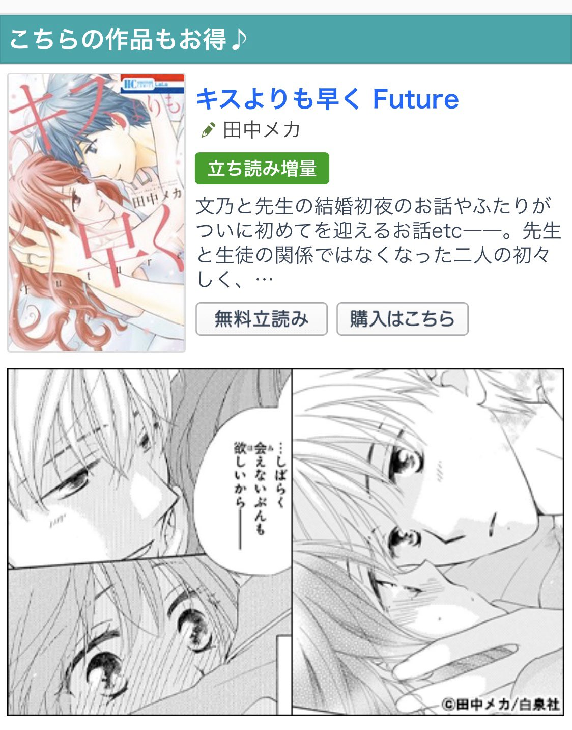 | 商品の特徴 | キスよりも早く 田中メカ キスよりも早く 田中メカ 2011年複製年賀状。キスよりも早く田中メカ2011年複製年賀状。キスよりも早く田中メカ2011年複製年賀状。コミック雑誌Lalaで当選したポストカードです。小花美穂のサイン入りこどものおもちゃイラスト色紙。。Amazon.co.jp: キスよりも早く 1 (白泉社文庫 た 7-6) : 田中メカ: 本。ビニール内で保管していました。染み、折れ等見当たりません。推しが我が家にやってきた 慎本真 直筆サイン色紙 B | ||